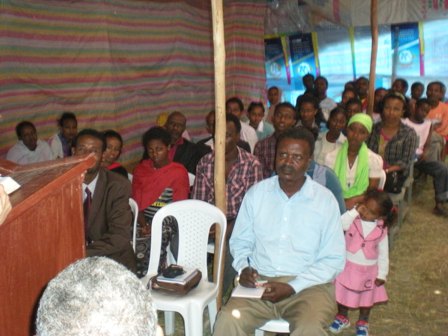 He had been imprisoned 14 times during the communist years (ending about 20 years ago) for preaching the gospel and distributing Bibles, once for a period of five years. He said they stripped him and beat him many times to try to make him say he would stop preaching. Five times they threatened to kill him; but God spared his life unto this day. Jemal and Abebe were the translators for the entire conference.