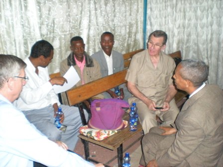 Rita, myself and George Herrig are leaving the US on Monday, May 21 and together we arrive on Tuesday evening in Addis Ababa. Here we are met at the airport by Brothers Burt, Jemal and Fikre and then transported to the rented house nearby where Burt and Nancy have been living for several weeks. Having to do our own meals, washing, cleaning and shopping in the small local shops for everything needed, is certainly different than staying in the SIM guest house or at a local hotel. We also have to adjust our lives around the unreliability of electric power and running water; all drinking water must be purchased in the nearby local shops. We are finding the daytime temperatures to be in the mid 80s, dry and usually with a nice breeze; thankfully nights being quite cooler. We are also at a good high altitude; when the KLM flight landed here at the airport, the altimeter read 7,569 feet above sea level; this being high enough that there is no concern about malarial mosquitoes, although the small African black flies can be quite pesky and elusive of our various ways to catch and/or prevent them from coming in to bother us. The Asbills have been here, laying the groundwork for what for them will be a two month stay, setting up meetings at local churches and making connections with the help of the faithful local brethren, Jemal and Fikre.