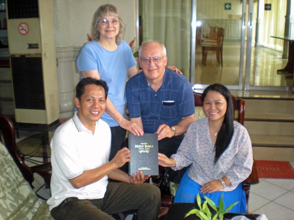 You have undoubtedly already read Bro Burt’s report of our arrival at the Manila Airport Tuesday, June 24. The team of five (the Asbills, Bro Herrig and us, the Jantzis) coming again after such a long tiring air travel. After a night at the nearby hotel we fly the next morning on Cebu Pacific Airlines south to Butuan City on Mindanao Island. The next day, being Thursday, some of us went to the school to do business there, but in the afternoon I went with Sister Cherry to the bank to deposit money that we will be using to purchase the new bibles.