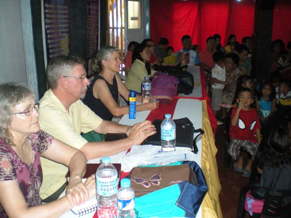 Sunday takes us to two separate locations for meetings. Bro Bebe and Sis Merlinda drove us out of town to Bro Rudy’s home fellowship in Buena Vista, about 20 minutes drive northwest. Bro Burt brought a very powerful message on true religion, much being said about and exposing the false teachings that the old order church has been fostering. After the meeting we had a brief rest stop at the hotel, then we went for the afternoon meeting at the children’s school. A very large crowd had assembled under the large metal roof awning in front of the school, consisting mostly of families of the school children (the school having added some 40+ more new children this year). It was a mixed multitude with much distraction and continual highway noise (motorcycles and loud truck horns). Despite all this, Sis Nancy managed to bring a flannel board teaching for the children and then Bro George brought a message, a call to salvation which will bear much fruit next Sunday.
